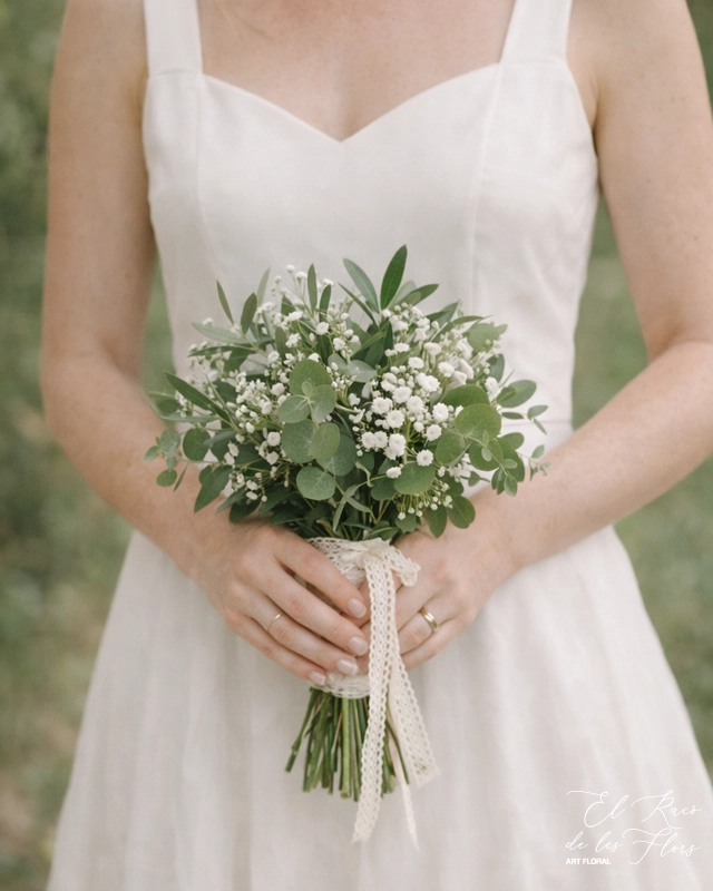 Ramo de novia natural, que seca bien de olivo, eucalipto y paniculata.