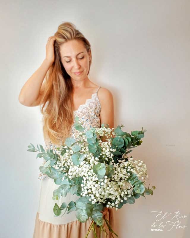 Ramo de gypsophila natural que secará bien, compuesto por eucalipto natural i gypsophila blanca.